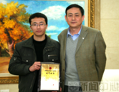 3月15日,我校管理学院张浩同学捐献造血干细胞后返回兰州。当日下午,甘肃省卫生厅副厅长王晓明在逸夫科学馆贵宾厅接见了张浩,并和我校党委副书记李恒滨为张浩颁发了中华骨髓库志愿者捐献证书、“甘肃省红十字会博爱金奖”奖章及助学金。甘肃省红十字会副会长陈明以及团省委、省红十字会赈济救护处、我校宣传部、学工部、团委、管理学院相关负责人,我校首例成功捐献造血干细胞的管理学院学生赵静参加了接见活动。
