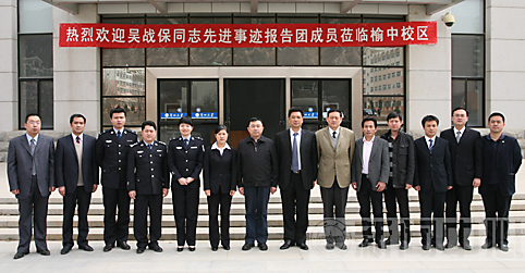 3月22日上午,全国司法行政系统一级英雄模范、湖南省优秀共产党员、我校优秀校友吴战保同志先进事迹报告会在榆中校区昆仑堂报告厅隆重举行。我校党委书记王寒松、校长周绪红分别会见了报告团全体成员。我校党委副书记李恒滨,湖南省司法厅党组成员、政治部主任谭颂方,甘肃省教育厅思政处处长李含荣,湖南省司法厅政治部教育培训处副处长蒋向军,湖南省监狱管理局政治部副主任胡勇华,湖南省监狱管理局调研员赵如钢出席报告会,我校宣传部、团委、学工部和管理学院相关负责人,各学院400余名师生代表参加了报告会。报告会由李恒滨主持。