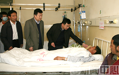 4月16日下午,校党委书记王寒松、副校长何晓东专程来到第二医院,看望由青海玉树地震灾区转送至该院接受治疗的伤员。
